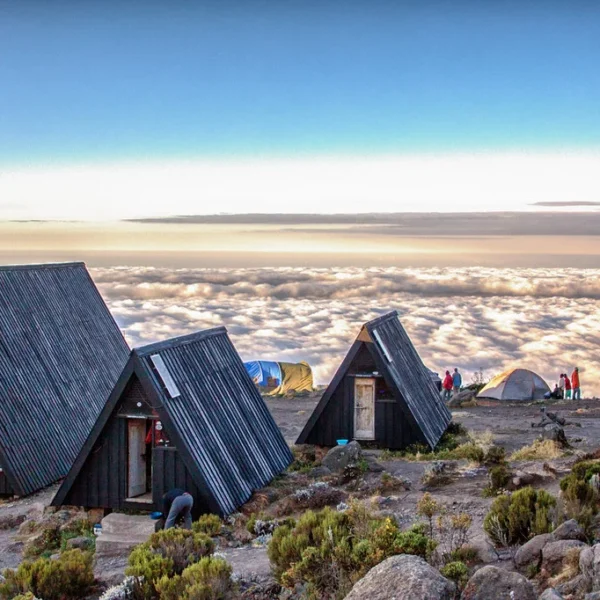 In the middle of the night, you start your ascent to Uhuru Peak, with your flashlight. The biggest challenge lies in the first part of this climb until you reach Gilman's Point. From here, Uhuru Peak is not far and is relatively easy to reach. Once at the summit, enjoy a beautiful sunrise, which is quite impressive at this height! After celebrating this achievement at the top, your descent begins through the Kibo Huts Camp down to the Horombo huts for dinner and overnight. In total, you are on your feet for about twelve hours today, so prepare yourself for a hard but rewarding day!
