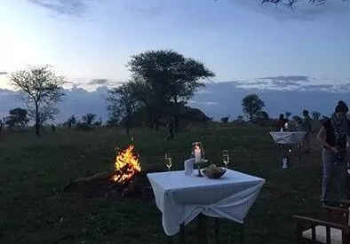 A bush dinner right on the plains of Serengeti National Park is the ultimate romantic dining experience! During a bush dinner, a delicious meal is served on the savannah plains under a sky glittering with stars. Enjoy the crackling of a campfire while listening to the animals scurrying in the dark around you. Usually, tables are set up just outside the camp, but still close enough to be safe.