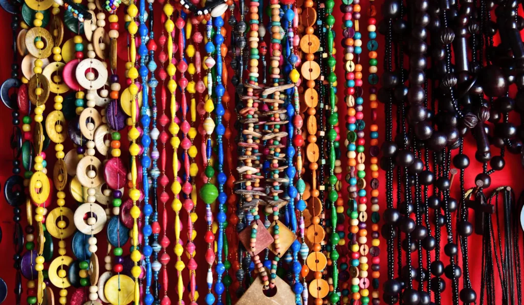 - Handmade beaded jewelry including necklaces, bracelets, and earrings
